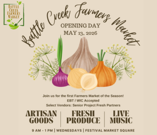FeaturedFestival Market Square 25 McCamly St S,, Battle Creek, Michigan, United StatesJoin us for the opening day of the Battle Creek Farmers Market 2026 season! Experience an array of local farm vendors, artisan goods, live music, a cooking demonstration featuring spring produce, plus a GIVEAWAY! We gladly accept SNAP and Double Up Food Bucks! Interested in becoming a vendor? Get more information HERE! Want to showcase […]